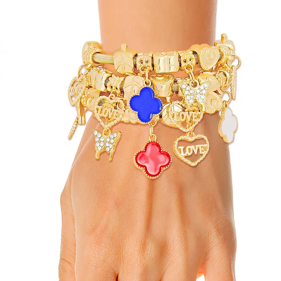 Charm Me Beautiful Bracelet-Blue Clover Gold (ONE BRACELET)